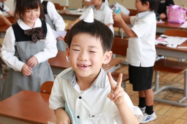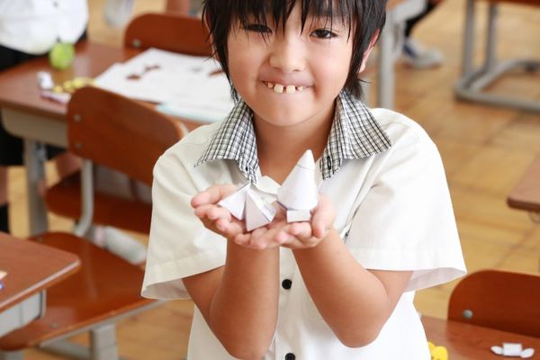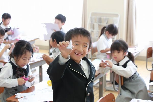 さすが,立体感覚が育ってきたEIKOの1年生。平面がある立体はすいすいつくってしまいます。