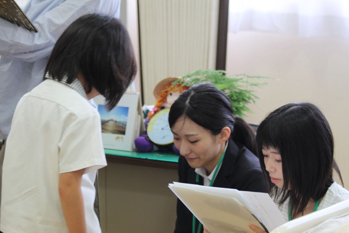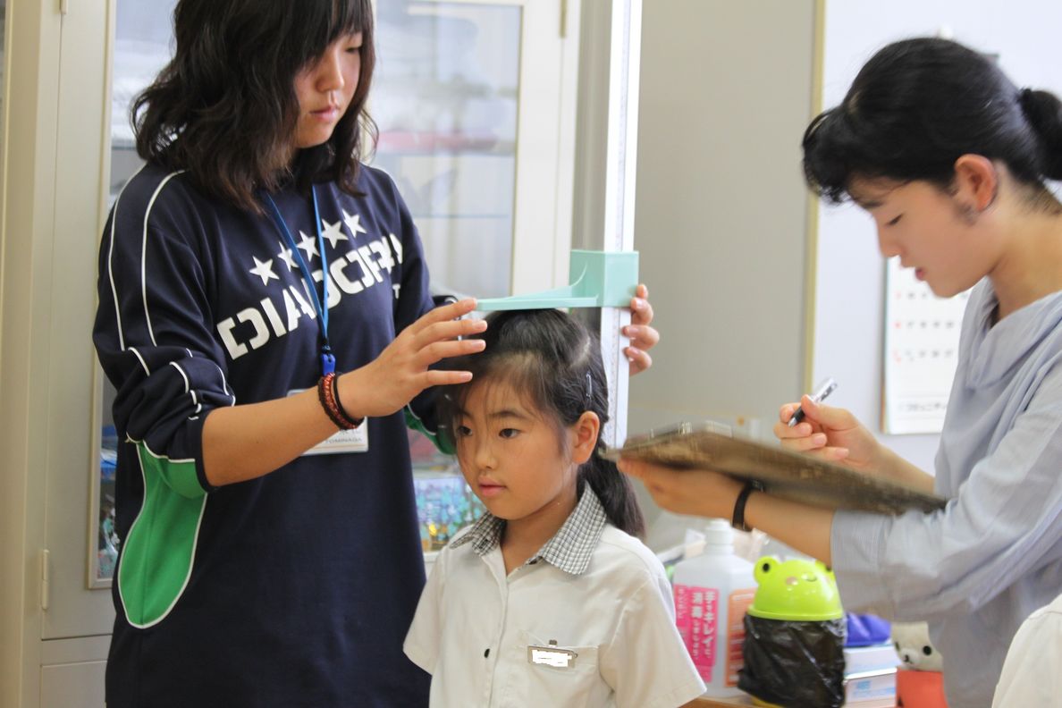身体測定には中学校の養護の先生も協力してくれます。今回の測定には英宏中で教育実習中の実習生も参加しました。今後も、小中連携を通して、子どもたちの成長をサポートしていきたいと思います。