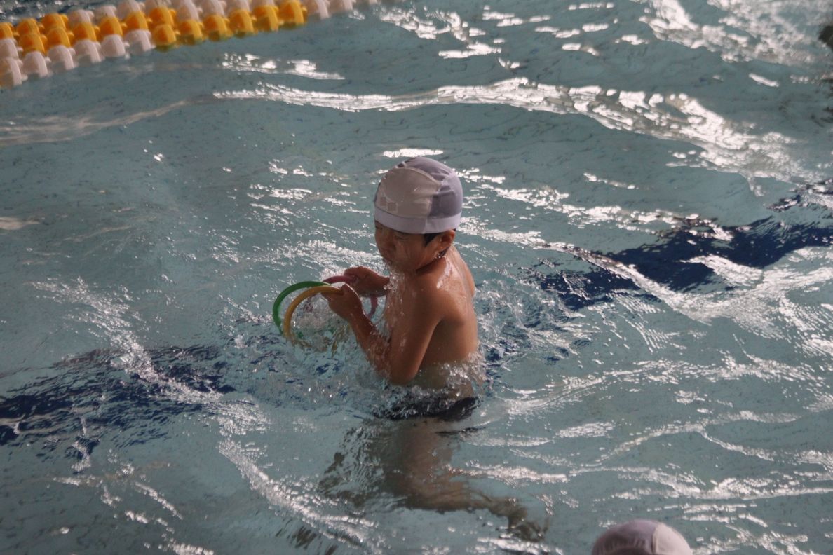 水が少し苦手な人は,水の中の輪っかを拾うゲームをして,より水に親しめる機会を増やしました。たくさん輪っかをとり,とても喜んでいました。