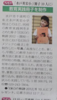 本日のよみうりタウンニュースに本校の「EIKOの軌跡2012」の冊子を紹介されました。特色ある実践ということで,授業について紹介がありました。先着10名様プレゼントですので,是非ご応募ください。