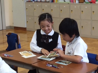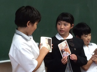 4年生の授業の1コマ。チャレンジ国語ではアートカードを使って言語感覚を磨き、他者に説明する力を高めています。