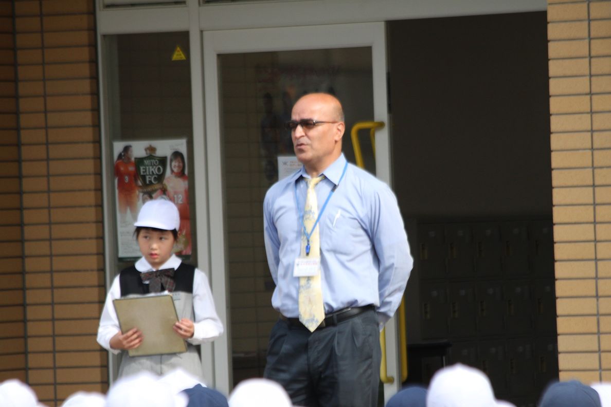 木曜日の朝は「イングリッシュ・ミィーティング」。ジミー先生とKenji先生の英語のスピーチで一日がはじまります。