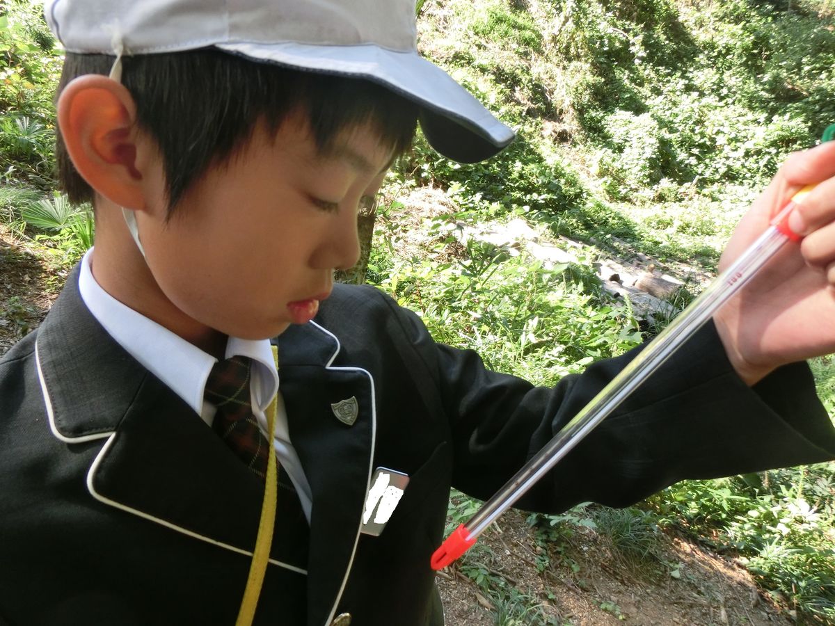 学校に隣接するビオトープ「EIKOの泉」での理科の授業の1コマです。