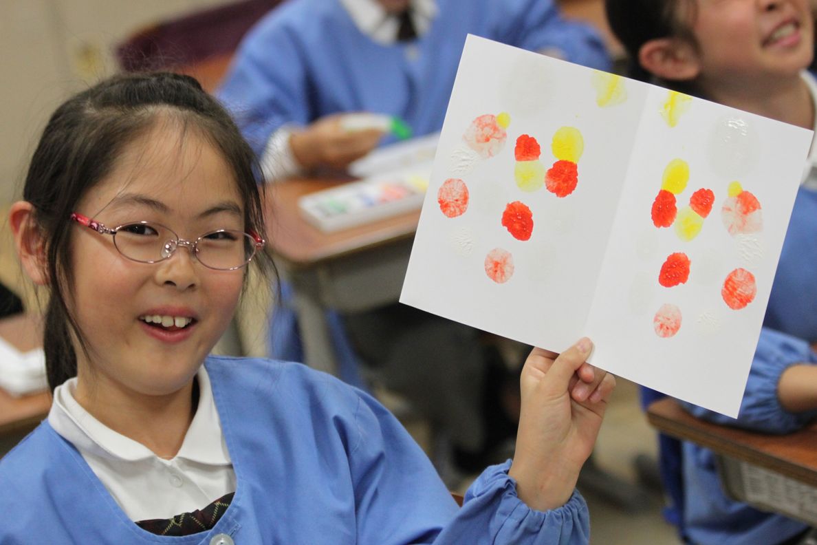 指スタンプの模様の完成です!アフタースクールで楽しく、充実した時間を過ごす英宏の子どもたちです。