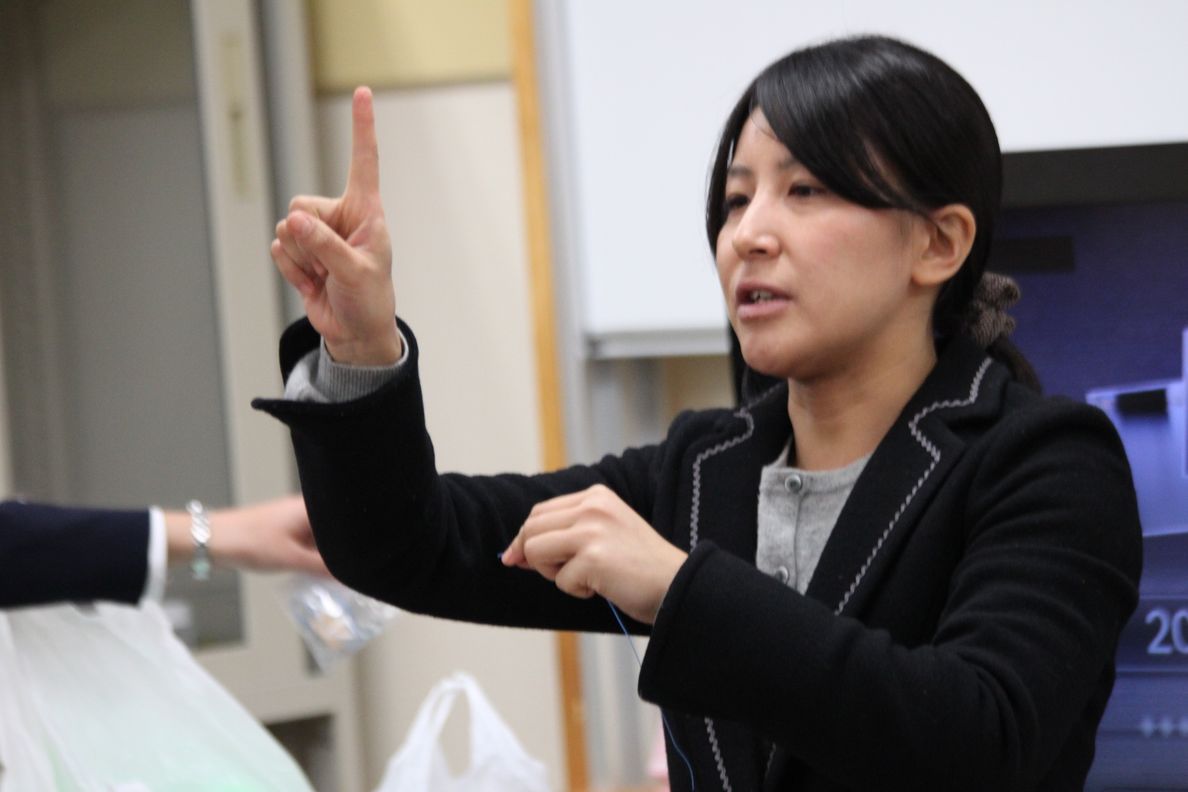 難しい作業ですが,大型テレビを使って教師の手元を提示して,わかりやすく実験方法を解説します。