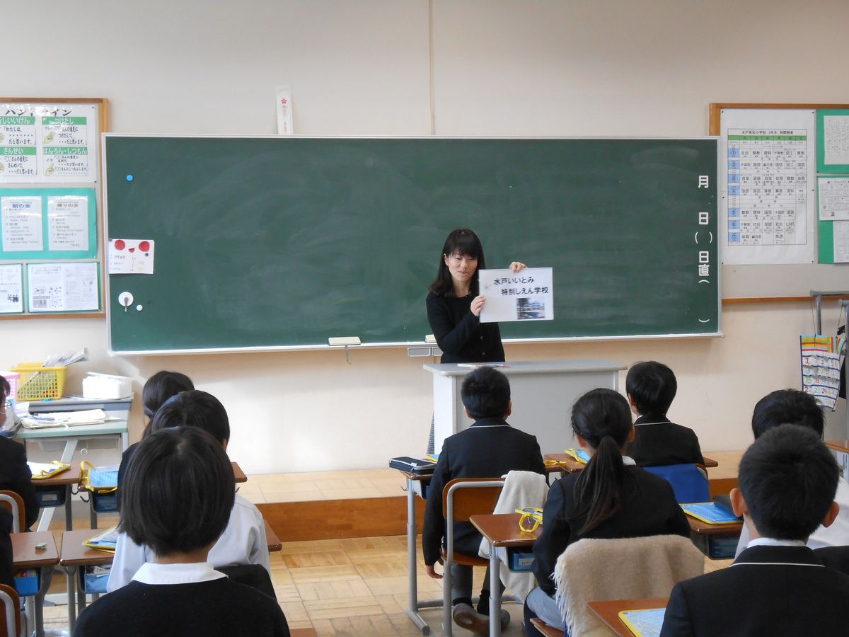 今日は茨城県立水戸飯富特別支援学校の3年生のお友達をお迎えして、交流活動にとりくみました。同校の先生から学校説明を受けたあとに、国語や音楽の授業を一緒に受けました。