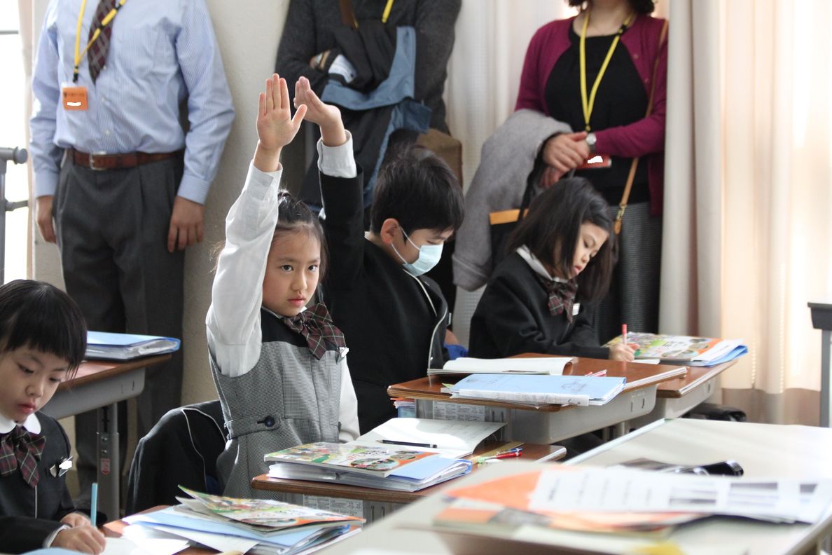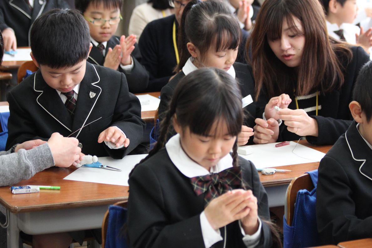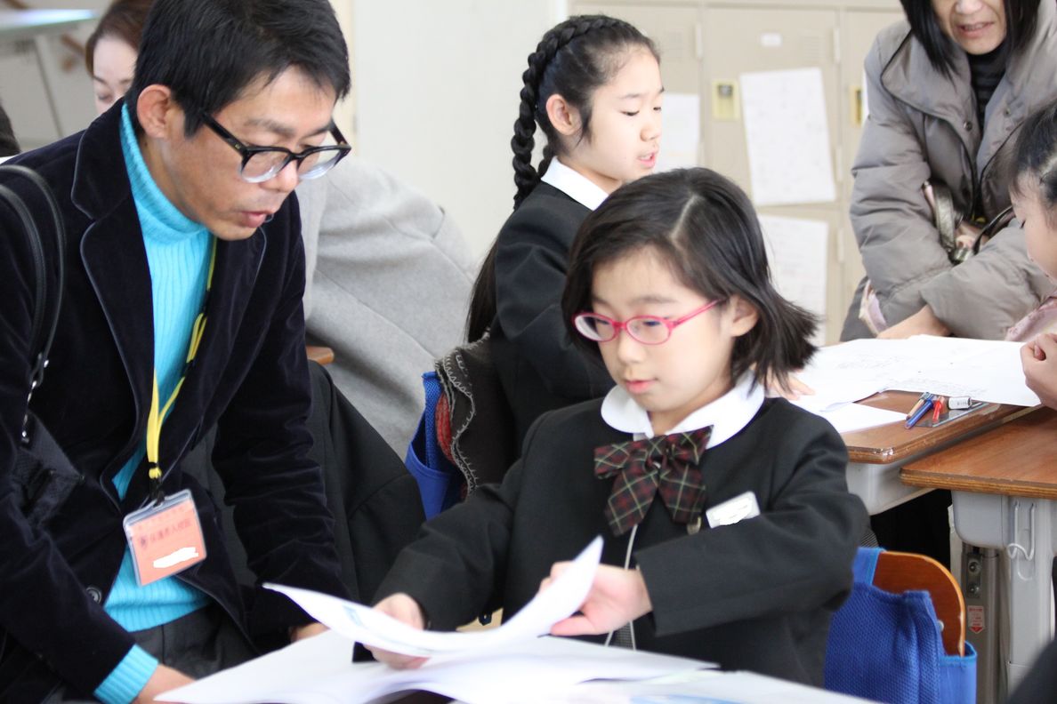 1年生は,たかこ先生の生活【理科】の授業です。英宏小の授業参観では「学び」の理解を深めるために、親子で学習に取り組む時間も設定すしています。