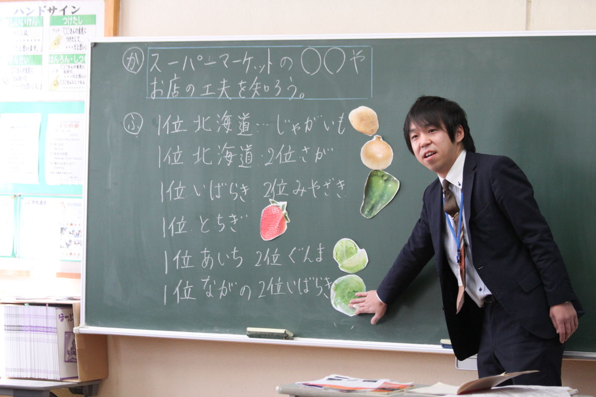 2年生の,さとる先生の生活【社会】の授業の1コマ。