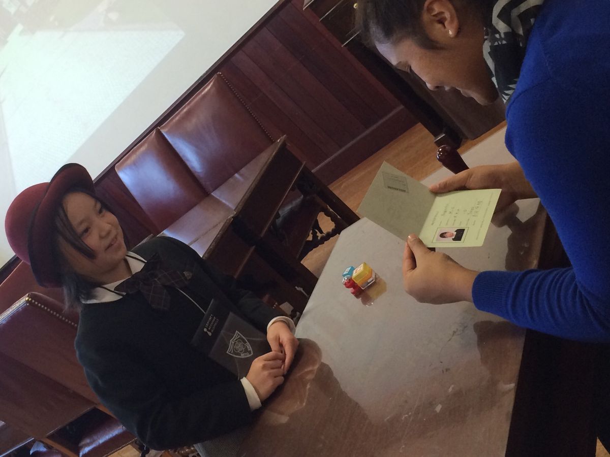 雪が少し残りながらも、暖かい気候に恵まれた国内留学1日目。パスポートを見せ、入国審査中です!