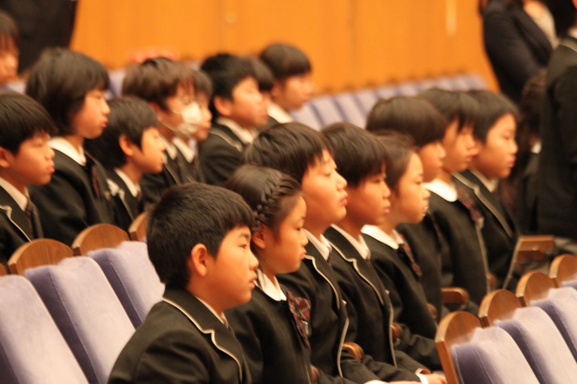 気持ちを引き締めて式にのぞむ子どもたち。背筋もピンと伸ばしています。