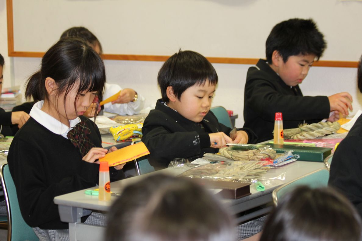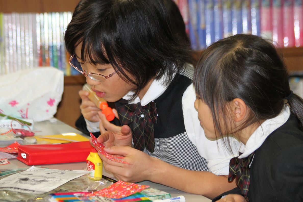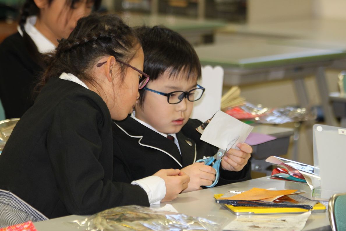 上級生の手元を見つめて、作り方を学ぶ姿もあちこちで見られました。