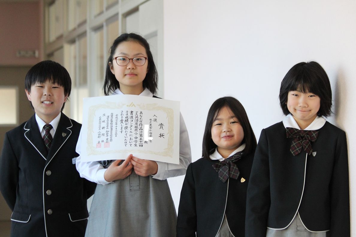 JA共済茨城県小・中学校書道コンクールでは4名の児童が入選しました。英宏小では個人の得意分野を伸ばすことを大切にしています。書道・絵画・音楽・文芸・工作などさまざまな分野で活躍する児童がたくさんいます。