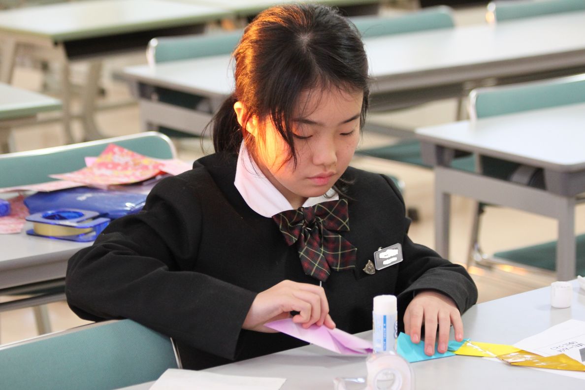 今日のアフタースクールの「クラフト教室」は雛飾りのリース作り。折り紙で楽しく工作しました。