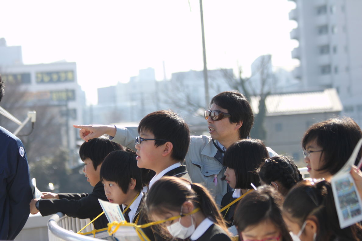 職員の方の説明をよく聞き,メモをとる子どもたち。