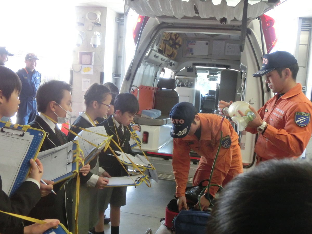3年生は,消防署と歴史館に行き,救急車の設備や防護服について学び,歴史館では茨城の歴史について触れることができました。