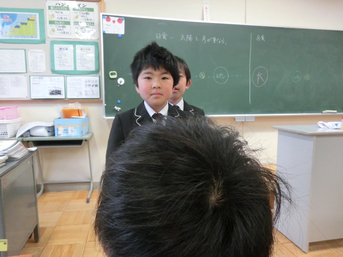 このように、前の児童(月)に後ろの児童(太陽)が隠されてしまうことが日食のしくみです。
