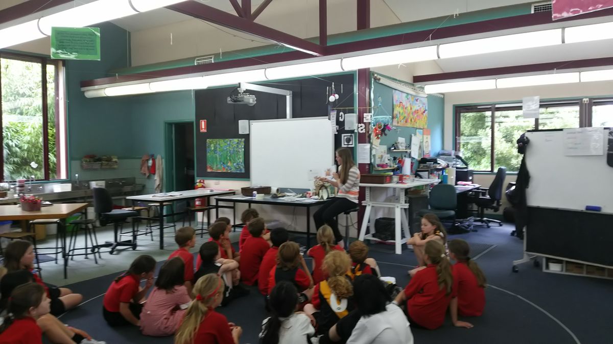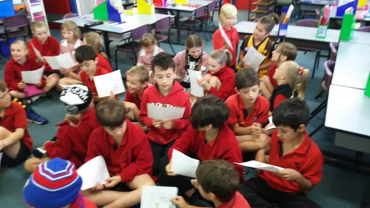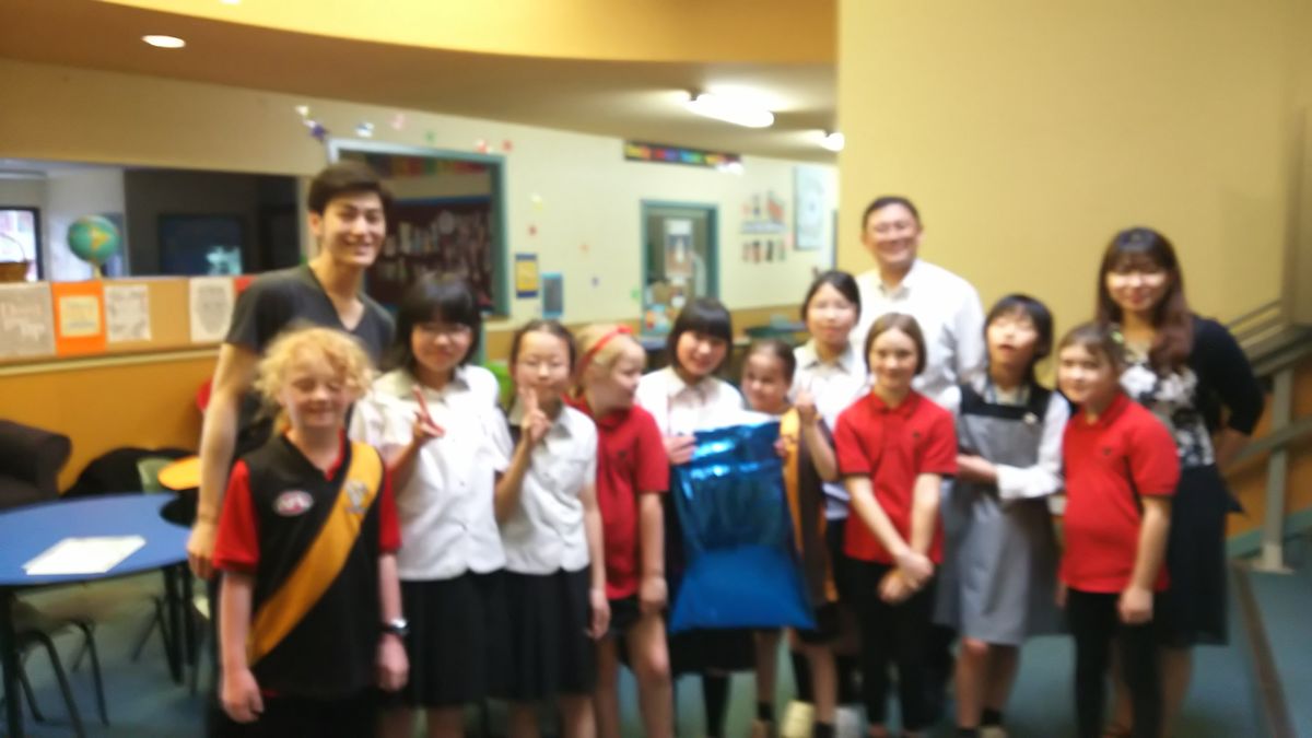 今日はFernyCreekPrimarySchoolの各クラスで田中教頭による特別授業がありました。特別授業では英宏小の子どもたちから英語のお手紙が全員に配られました。
