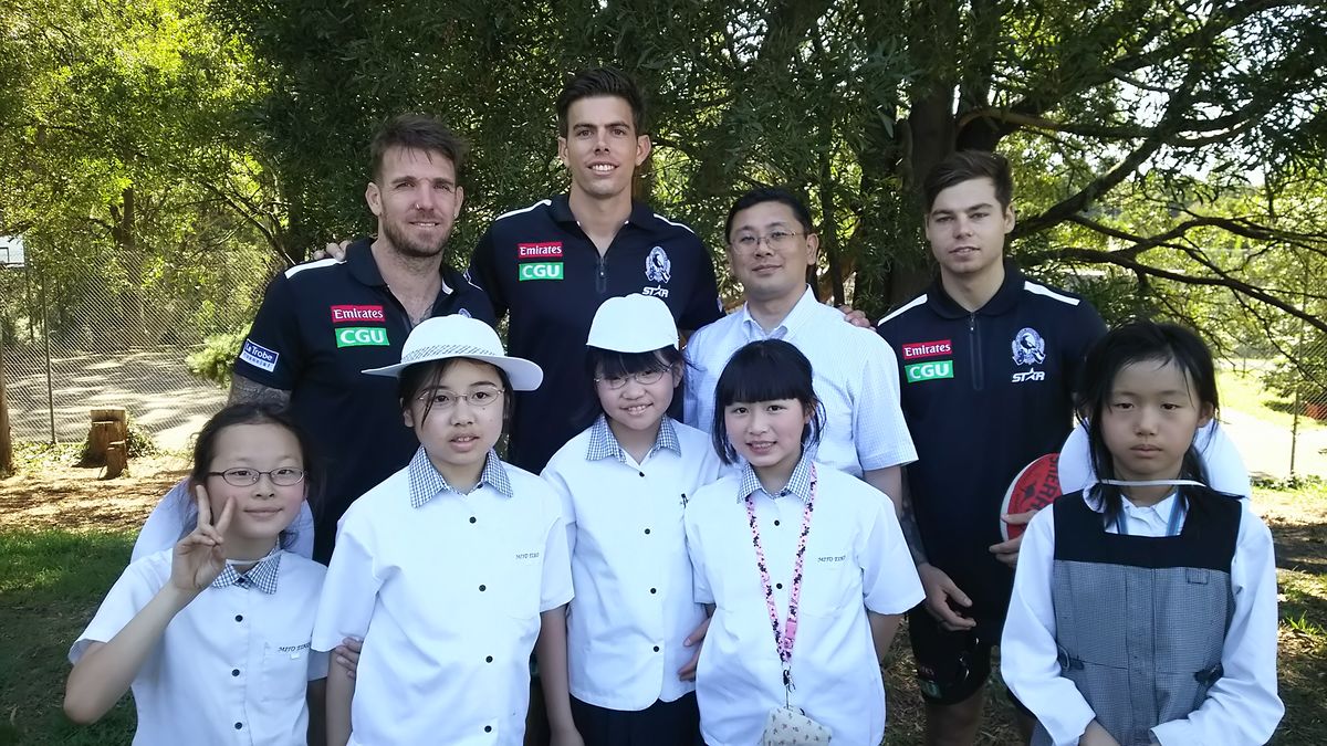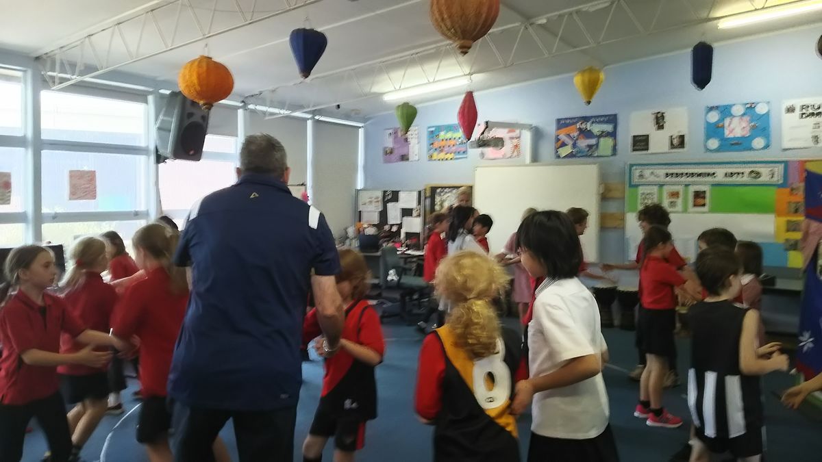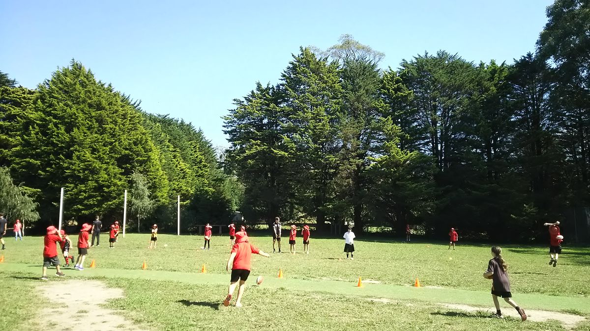 今日はサプライズもありました。オーストラリアのプロフットボールチームの選手たちが来て、子どもたちにオーストラリアフットボールを教えてくれました。