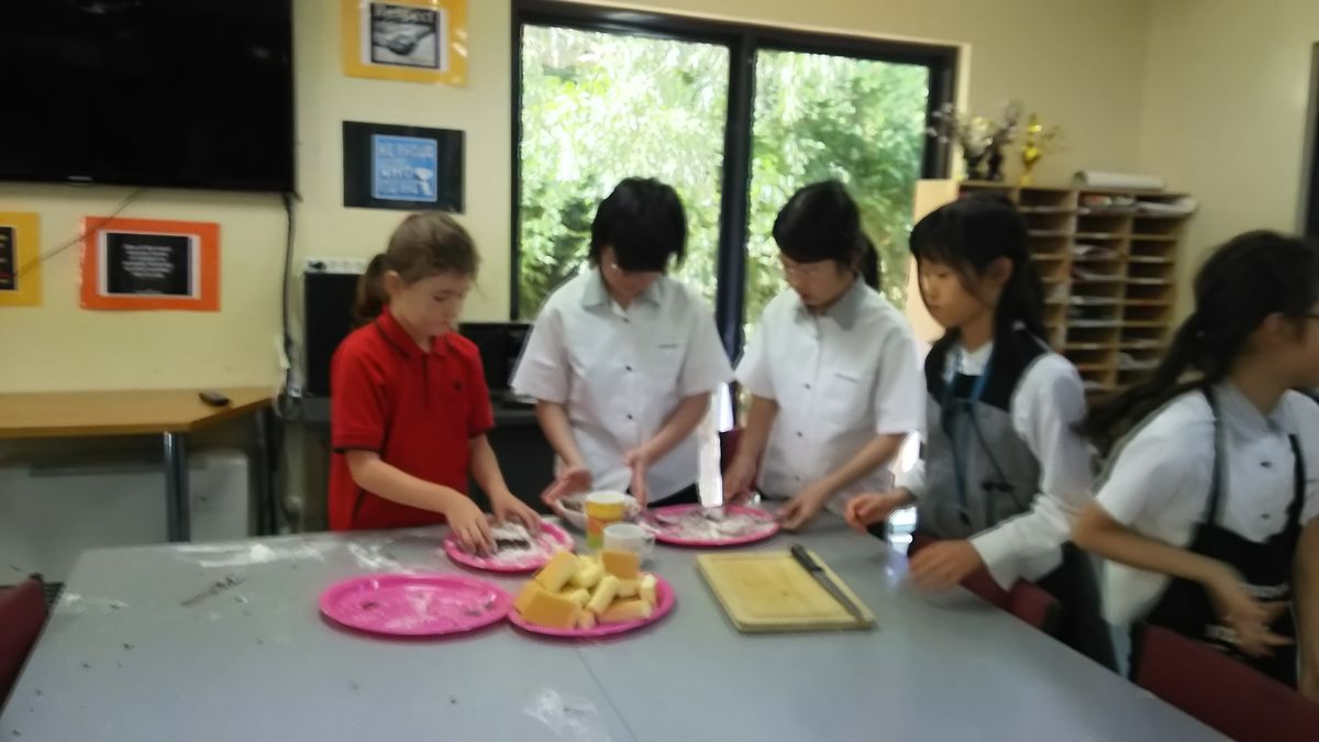 家庭科ではオーストラリアの子どもたちと一緒にお菓子作りに挑戦しました。