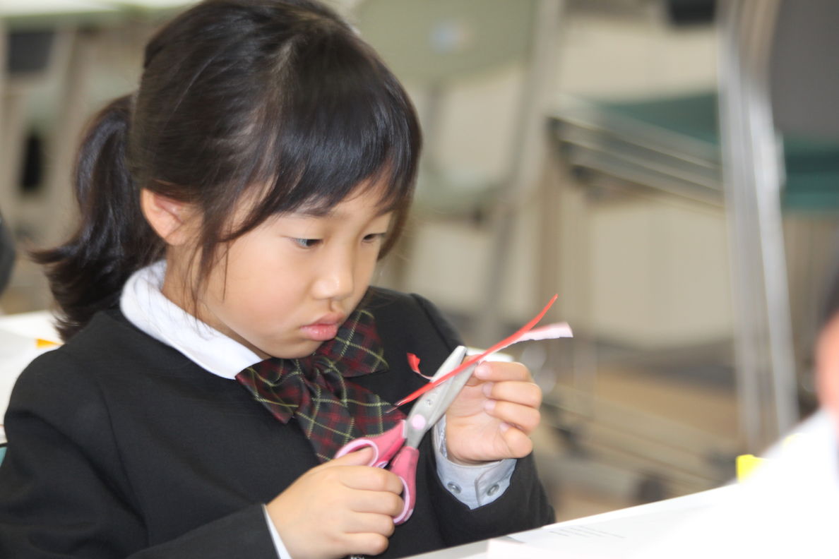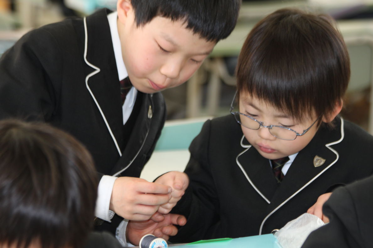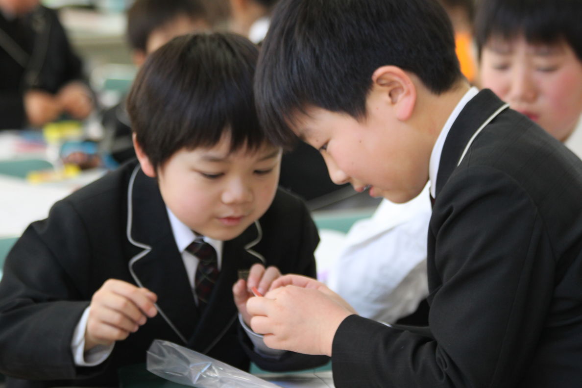 上級生が下級生に丁寧に教えて,カイトを作成していました。