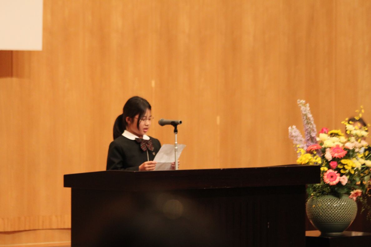 新入生代表挨拶。建築家を目指し,英宏中で頑張るという立派なスピーチ。