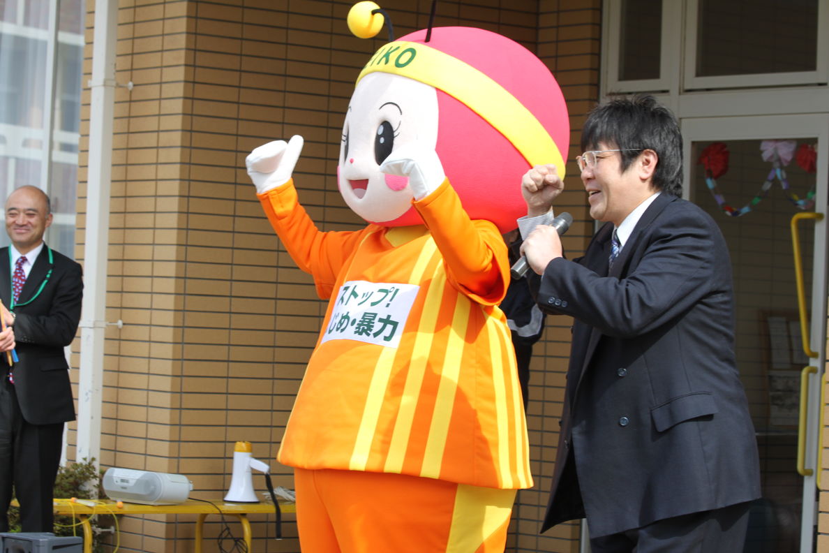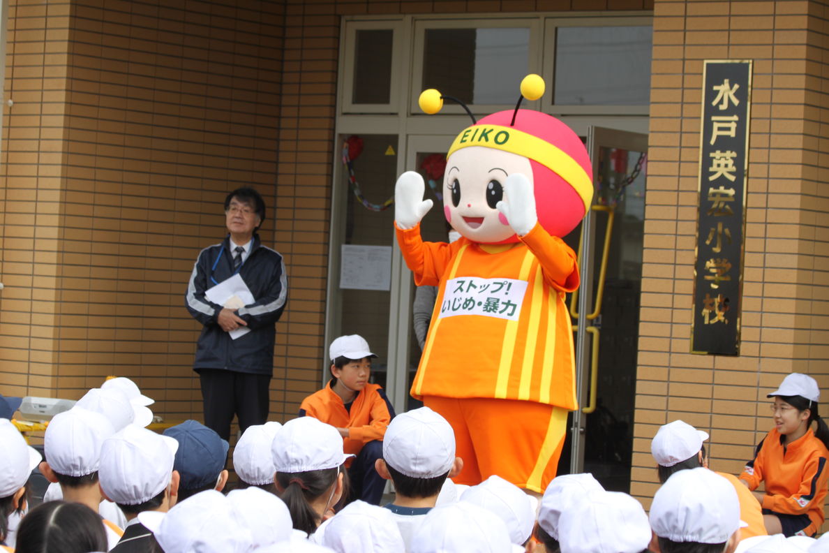 今日は,英宏小学校に『EIKOちゃん』が初めて登場しました。