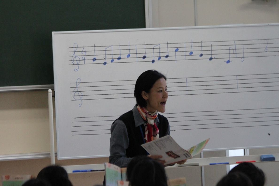 音楽担当のかなこ先生はフランスの音楽院での豊富な指導経験を活かして、子どもたちの音楽の指導にあたっています。