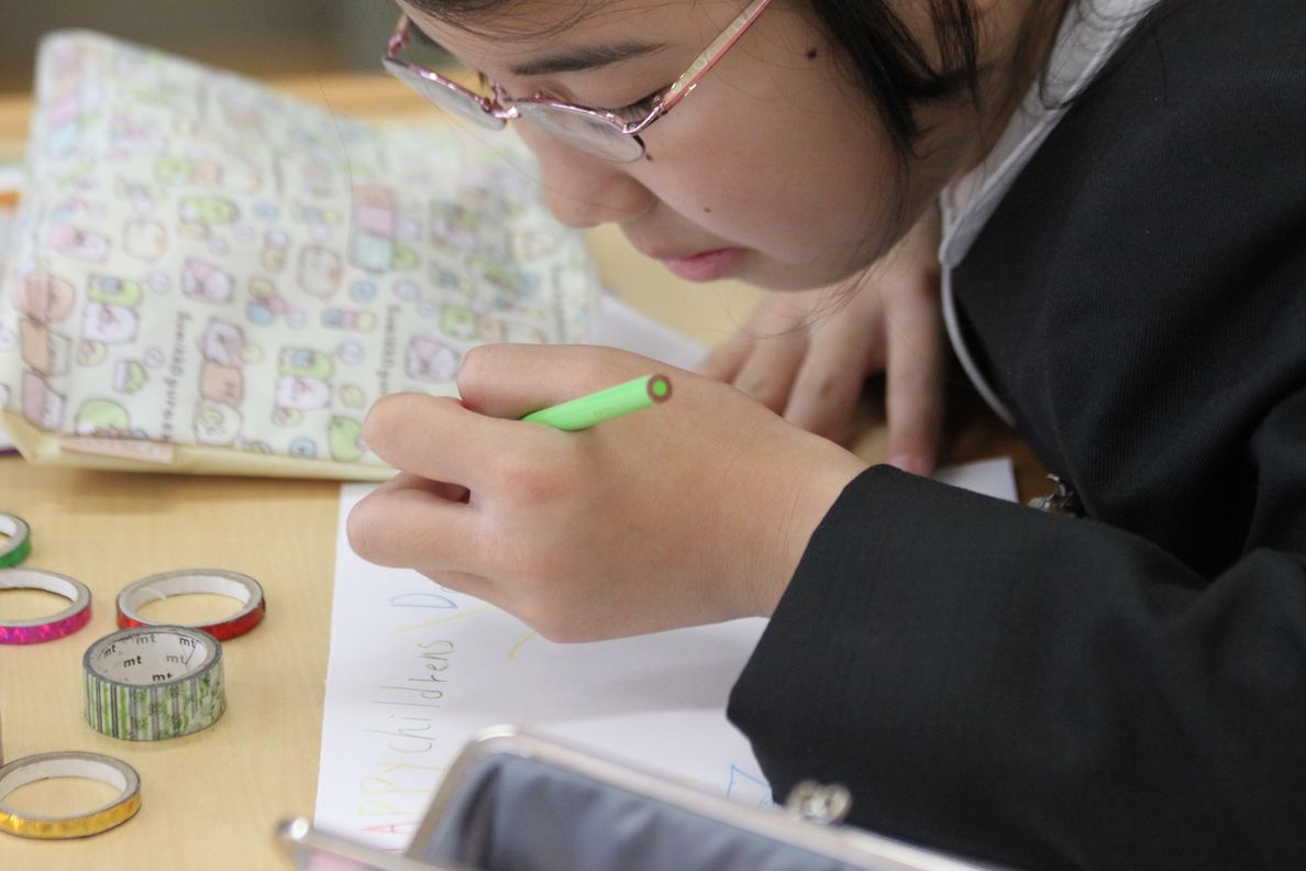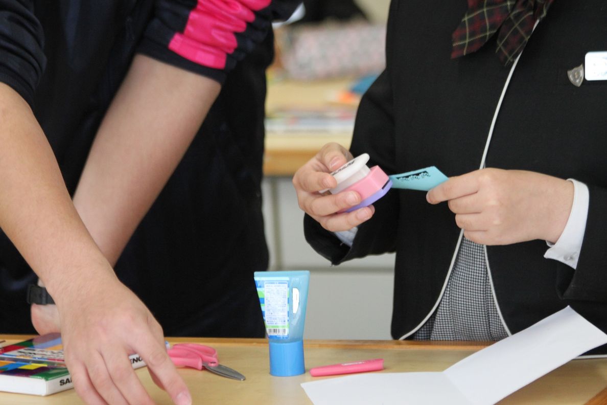 今日の6年生の授業はKenji先生とのイマージョンの図画工作の授業。オーストラリアの交流姉妹校のお友達に贈るアートカードを作成しました。楽しみながら制作に取り組む子どもたちです。