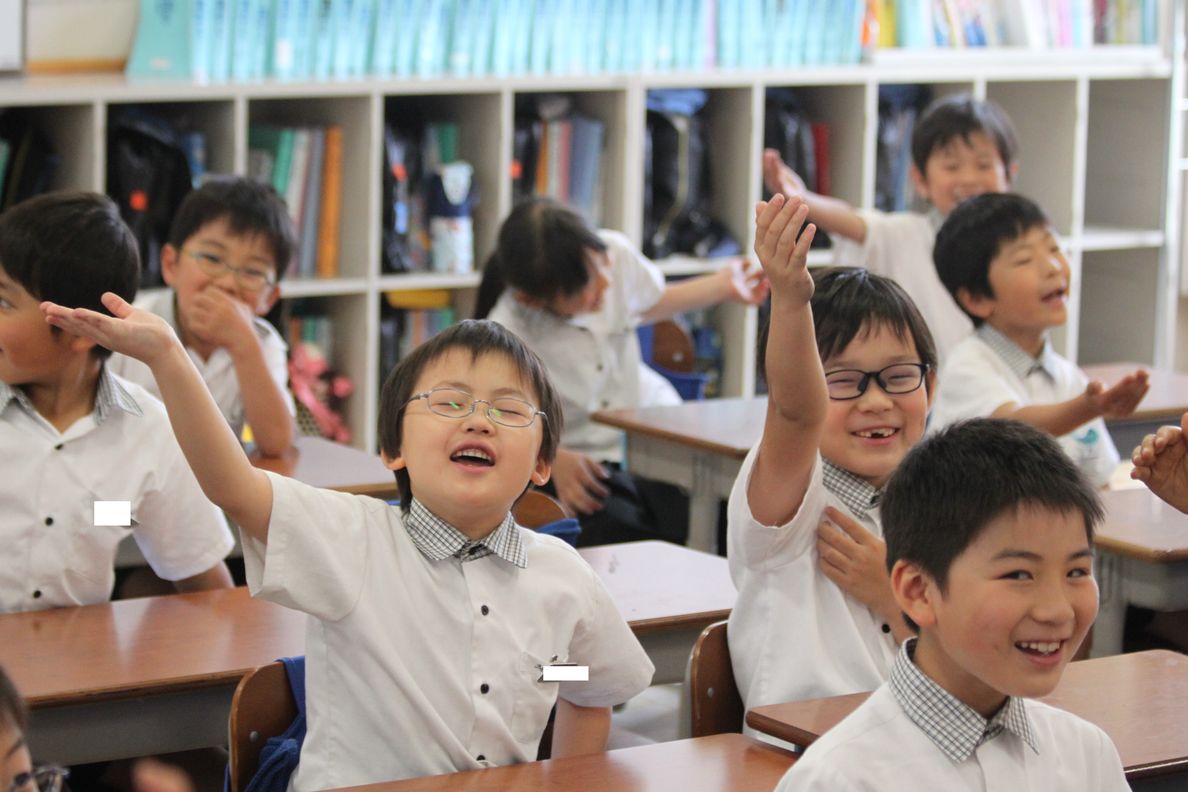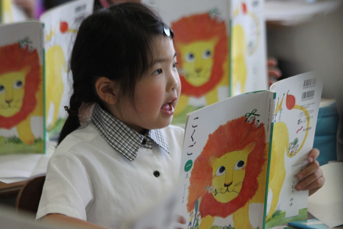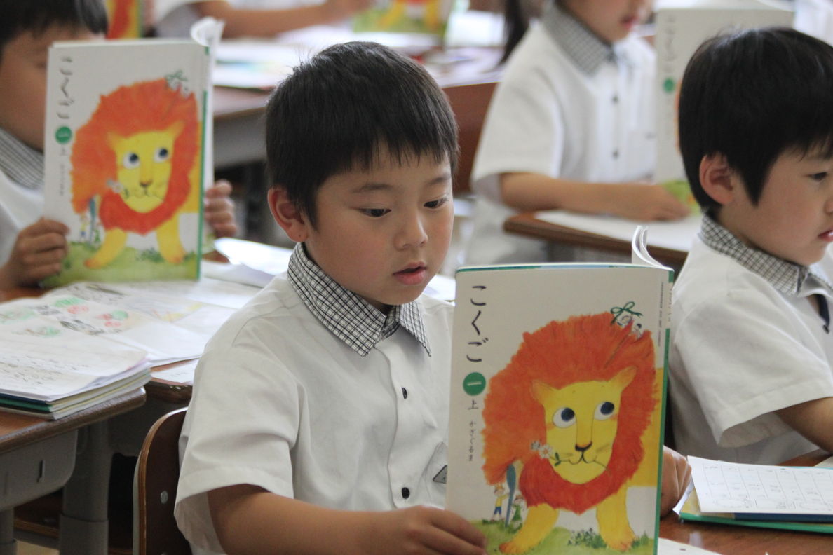 音読をする場面では,姿勢良く大きな声で読むことができています。