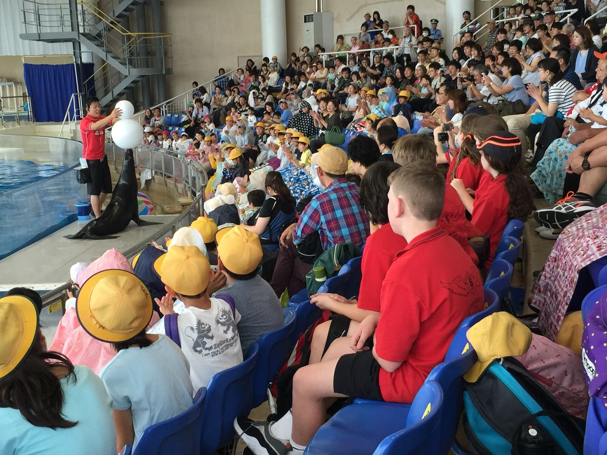 その後は,大洗水族館に行き,イルカショーなどを見学しました。見るものすべてが新鮮で,とても喜んでいました。