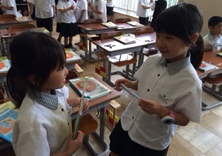 自分から友だちに声を掛けて,会話を楽しみました。