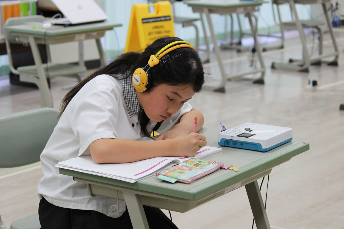 ヘッドフォンから聞こえてくる英単語を聞きながら自分のペースで学習をしていきます。