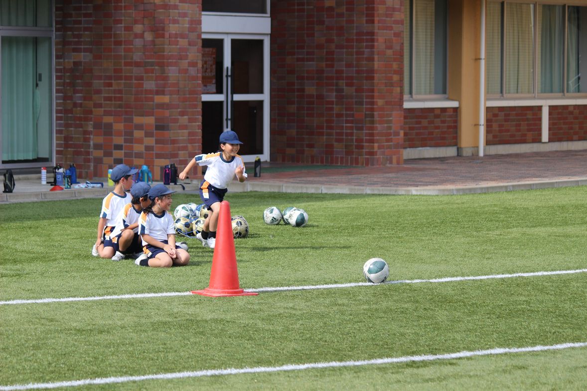 心身ともに大きく成長した2年生の体育の授業の一コマ。10月のスポーツ大会に向けて練習中です。今度のスポーツ大会は1年生から6年生の全学年がそろってのはじめての大会です。