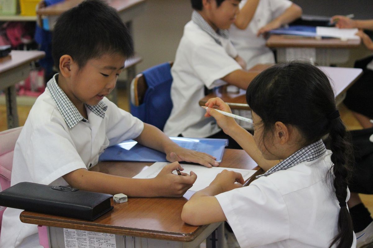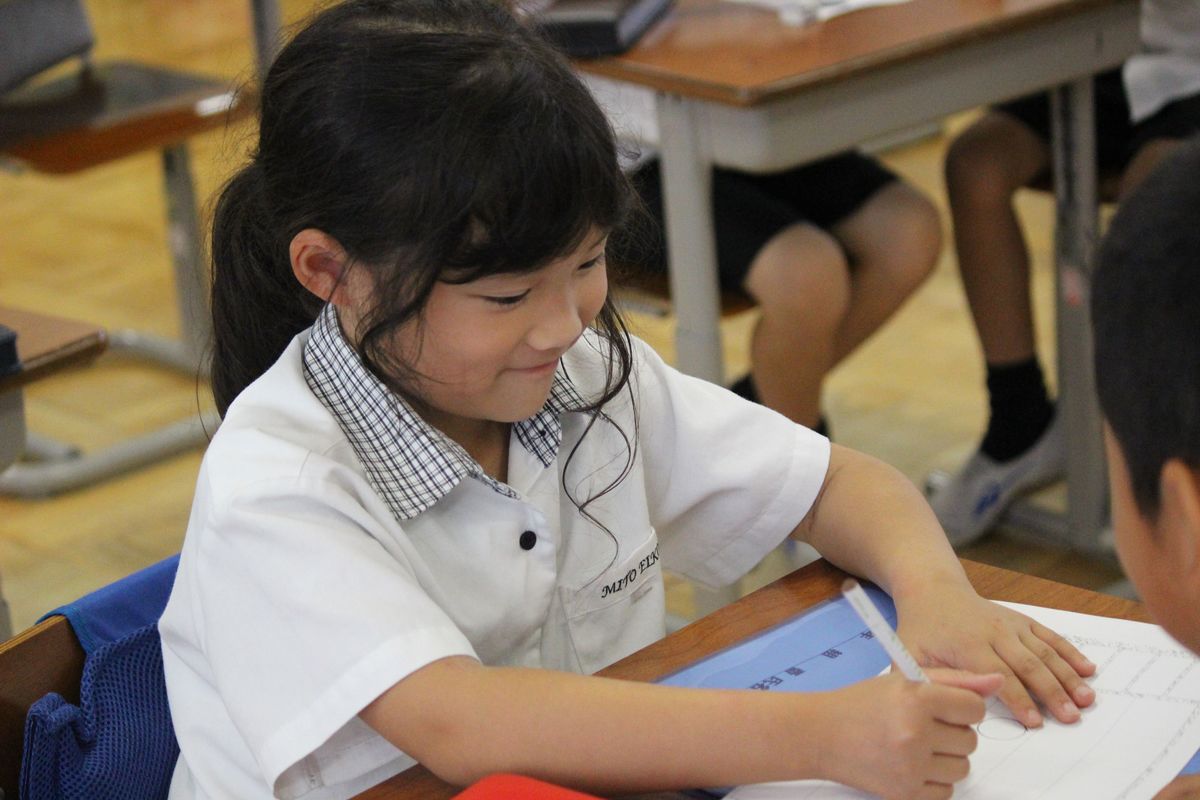 互いに教えあい、学びを深めています。お友達の説明を聞いて、「わかった!」と思わず笑顔がこぼれます。