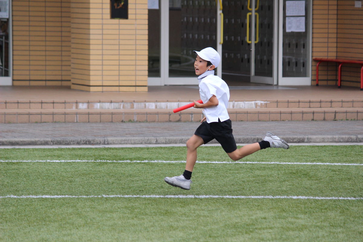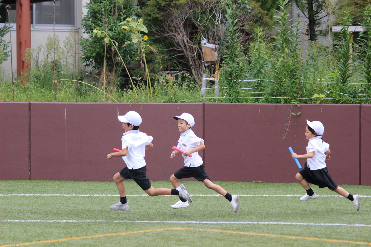 走る順番、バトンの受け渡し方を確認し、予行演習へ。本番さながらに白熱した勝負になりました。