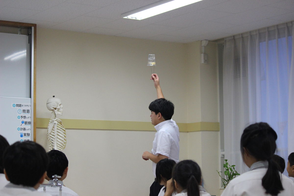 今回のテーマは「回転運動」でした。水の入ったコップを、回すと水がこぼれるか?こぼれないか?に、興味津々。