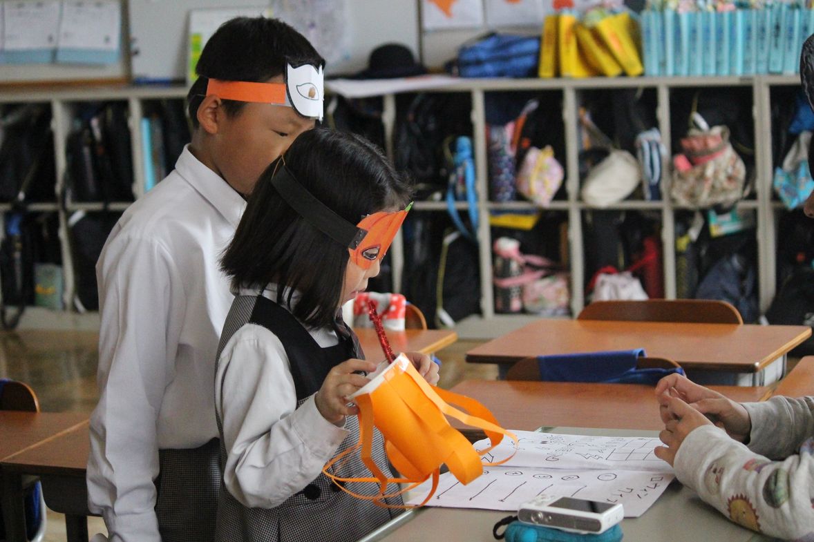 英宏小の「Halloween Party」は英語のコミュニケーションの練習も兼ねています。