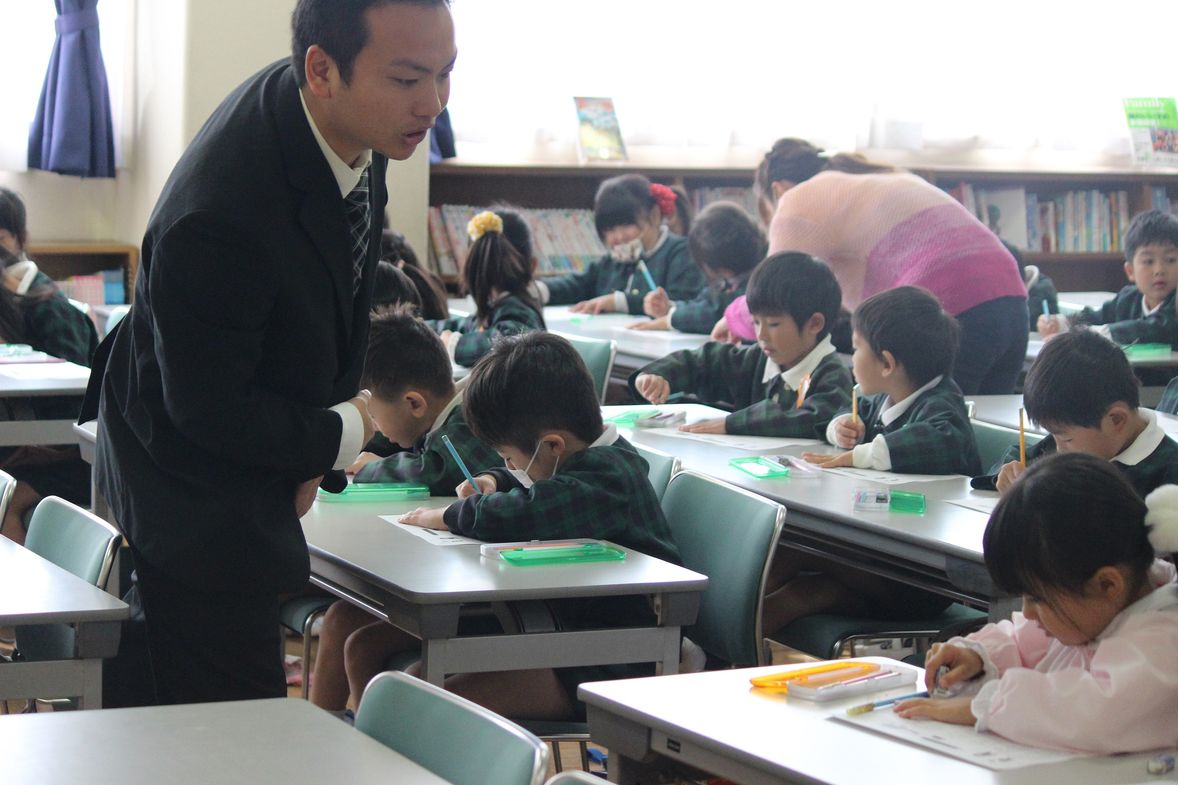 水戸英宏小学校と両幼稚園の教員は連携して、教科指導に取り組んでいます。小学校教員と幼稚園教員の関わり合いによって、お互いに教育力の向上を目指しています。