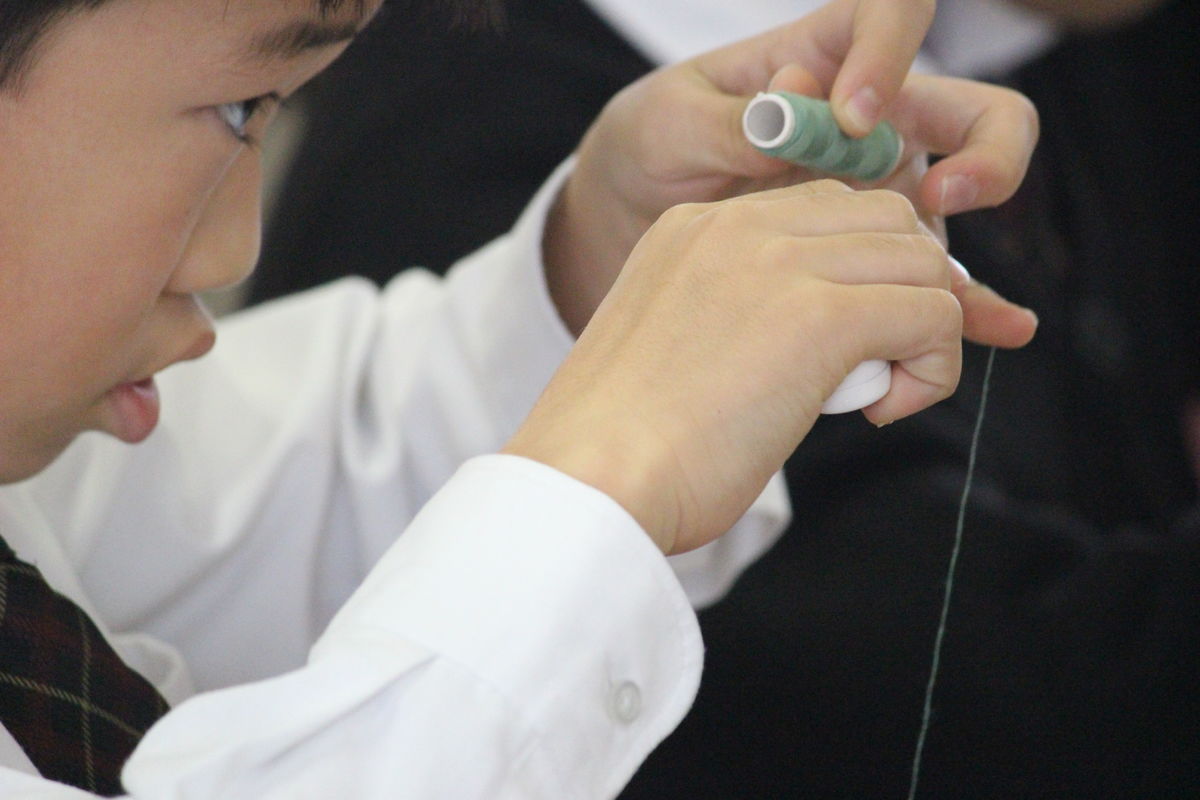 糸のとり方・針のさし方・玉結び・玉止め・ボタンつけの針のさし方などを前回行っているので確認をしてから縫い始めました。