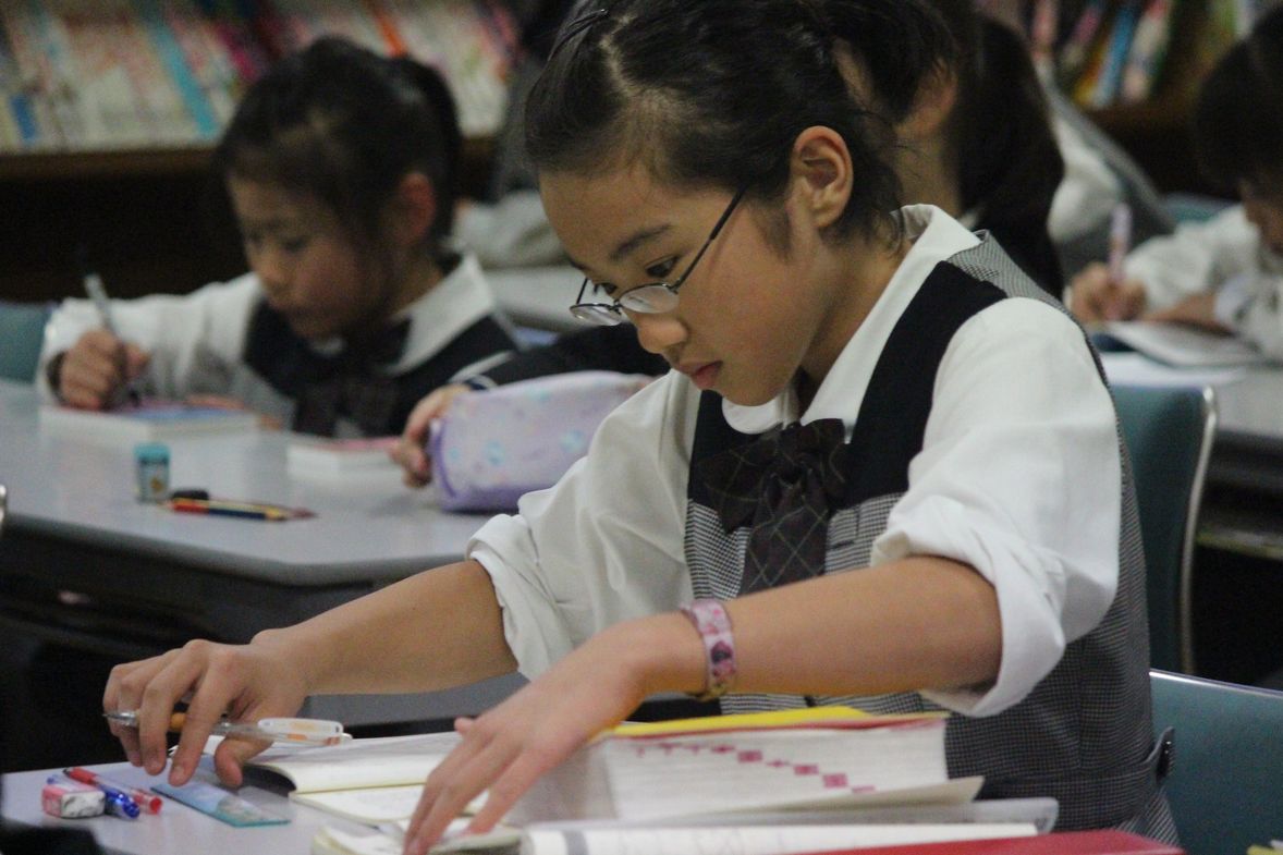 今日の英宏小の1コマ。アフタースクールのセルフスタディの様子です。セルフスタディは自学自習の時間。学校での宿題や持ち込みの課題、読書などにそれぞれのペースで取り組みます。
