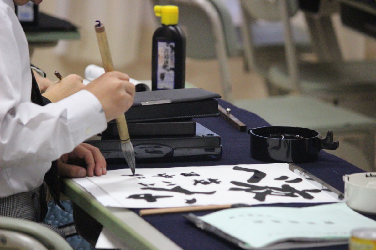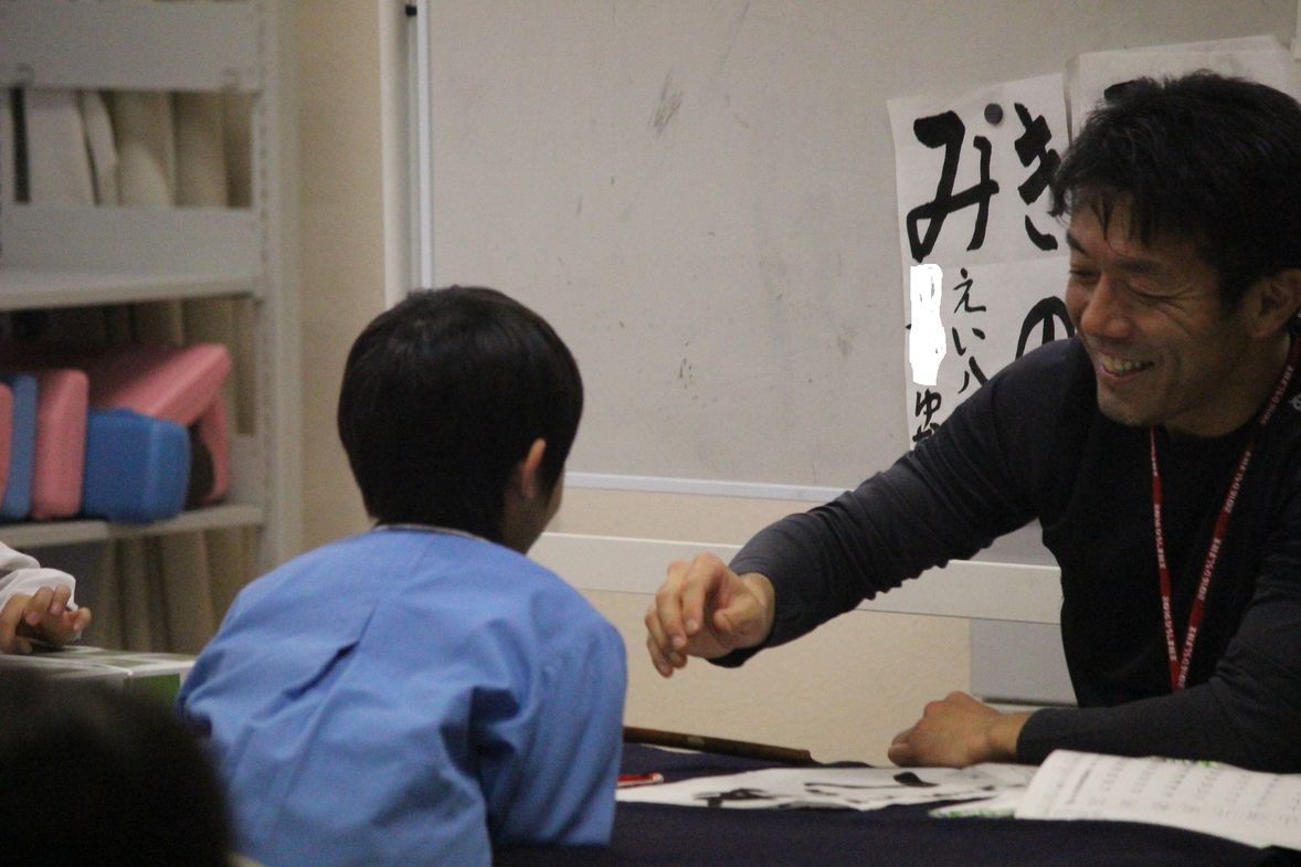 アフタースクール(有料)の書道教室の1コマ。真弓書道会のご協力をいただき毎週月曜日の放課後に開講しています。
