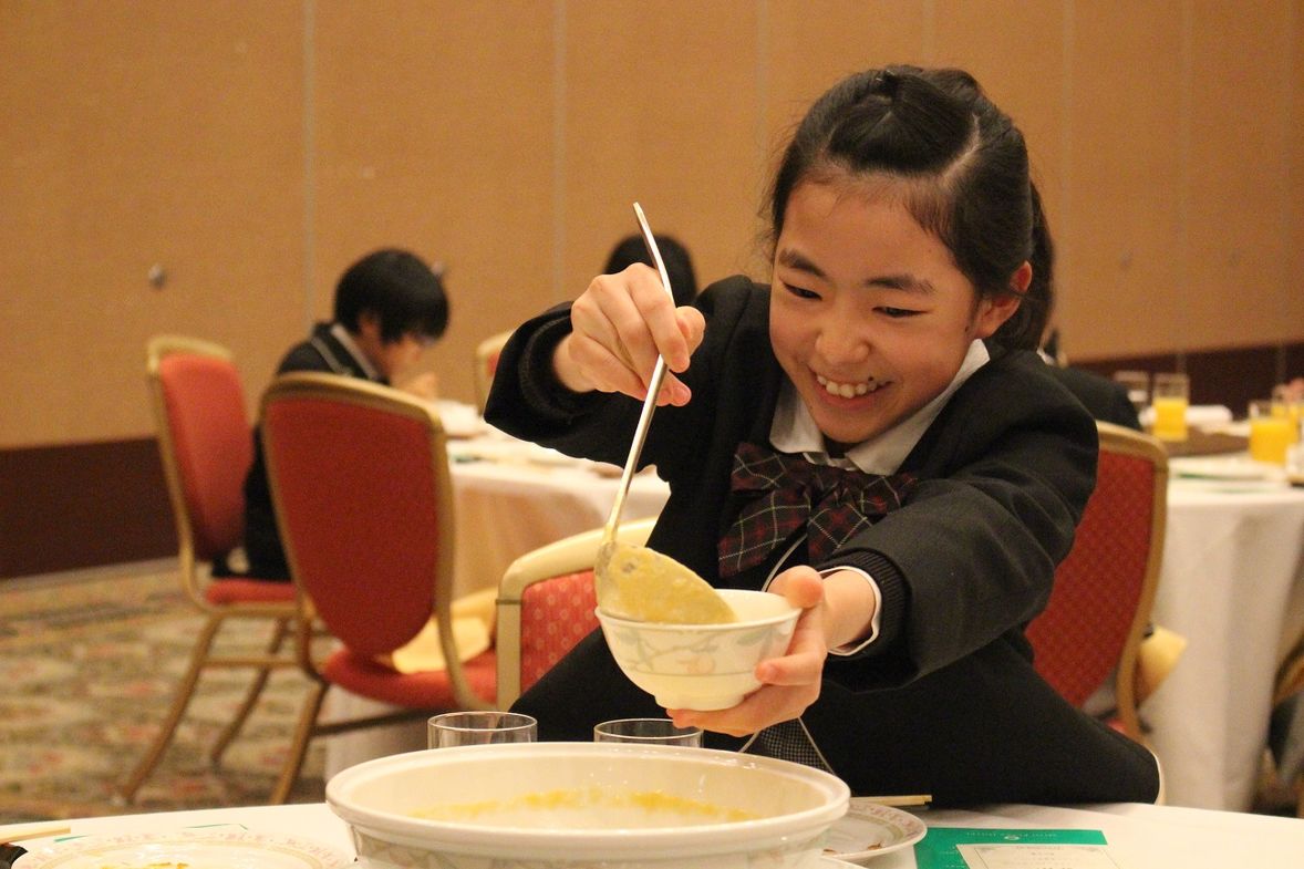 同じテーブルの人たちと料理を分け合いながら、相手の気持ちを考えて食事をすることの大切さを感じることができたようです。