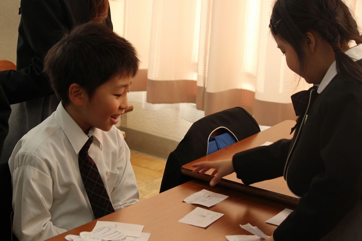 個性的な商品がそろい,とても楽しく対話活動を行うことができました。英宏小学校では1年生から,ともだちをさんづけで呼ぶことや,目上の方に敬語で話ができるように指導を徹底しています。社会のエリートリーダーとしてふさわしい態度を日々身に付けている,EIKOの子どもたちです。
