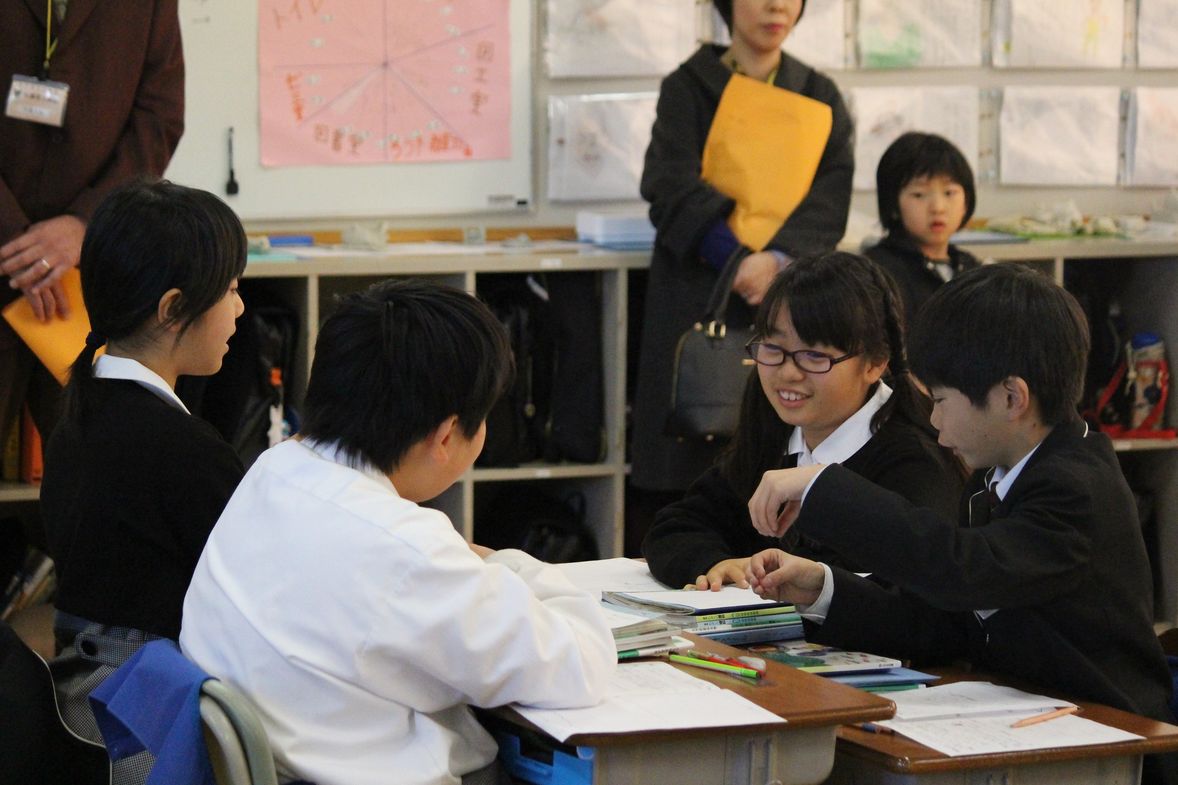 4年生は理科の授業です。児童の発表を受けて、話し合い活動を通して学習に取り組みます。