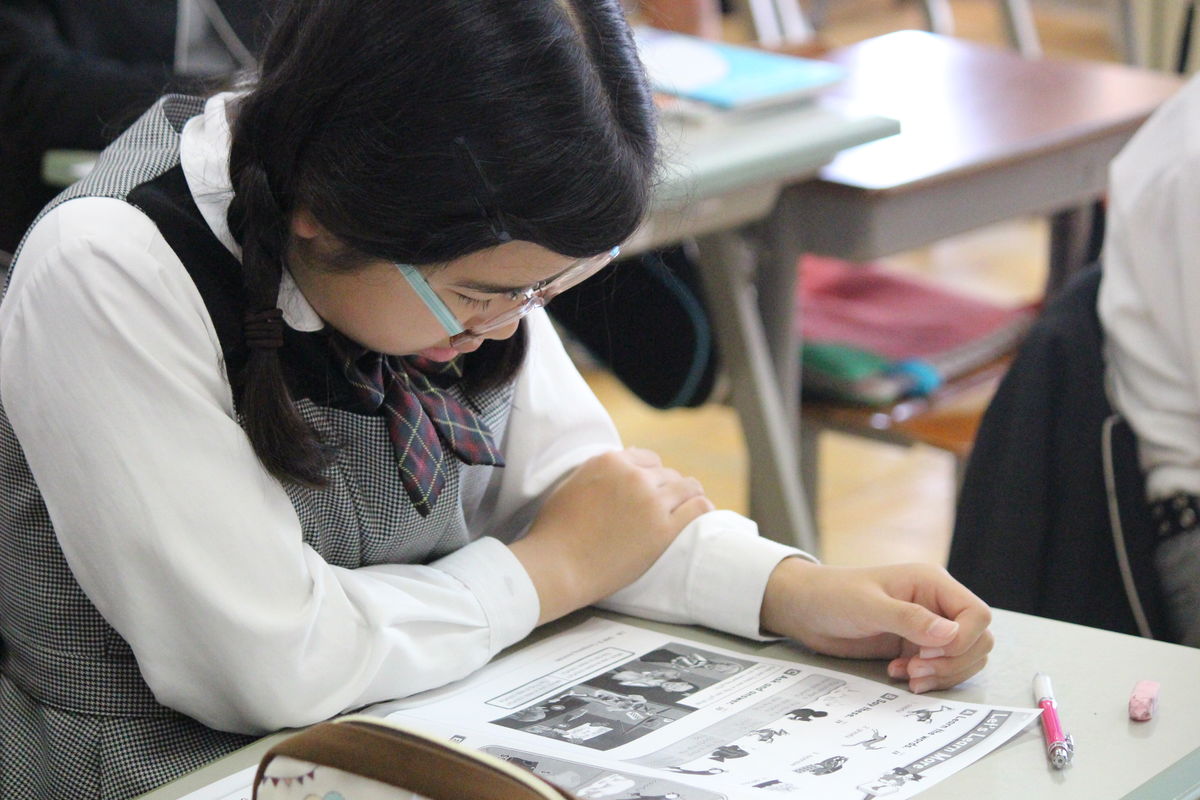 6年生は英語の授業。「比較級」の学習に取り組んでいます。