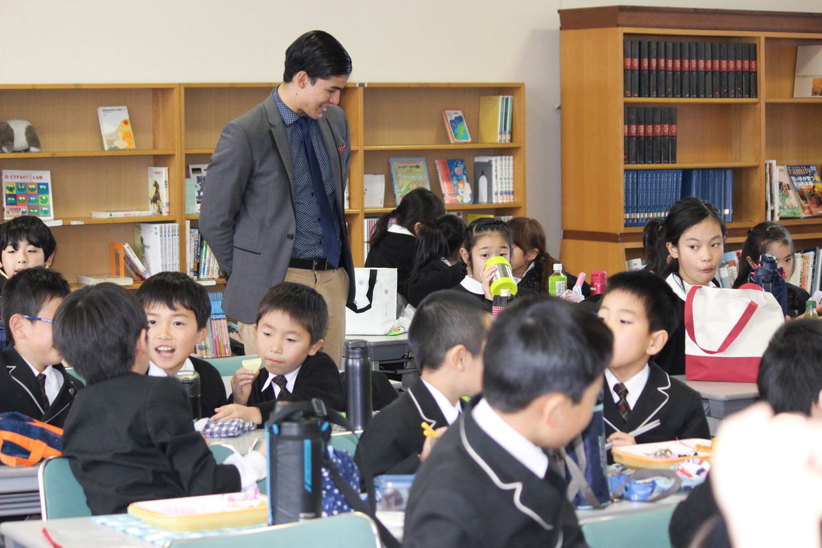 英語で会話をする一コマも・・・・・積極的に英語を使うことで,コミュニケーション力も自然に身につきます。 英宏小の子どもたちの今年の抱負は・・・?!