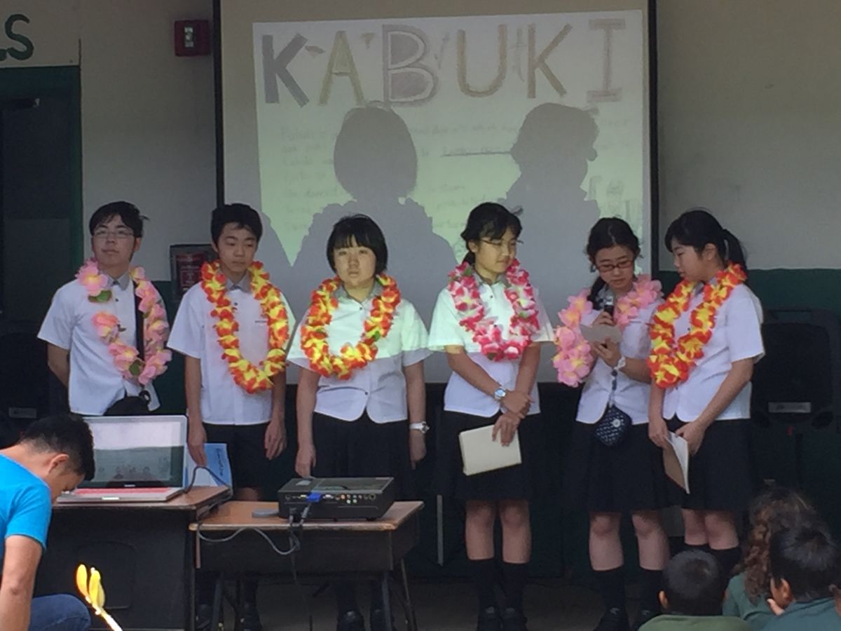 オープニングセレモニーでは、歌舞伎や食べ物,忍者などの日本文化や水戸英宏小を紹介しました。