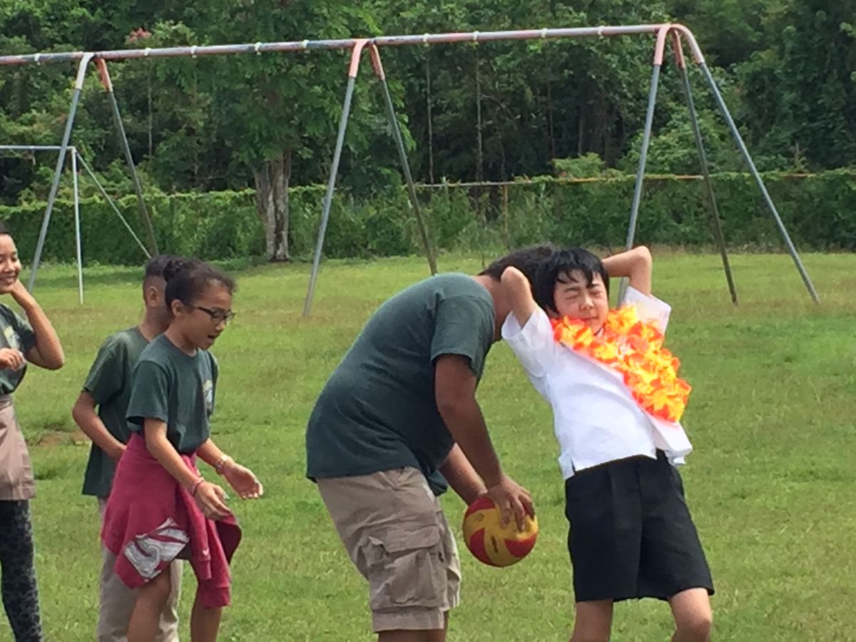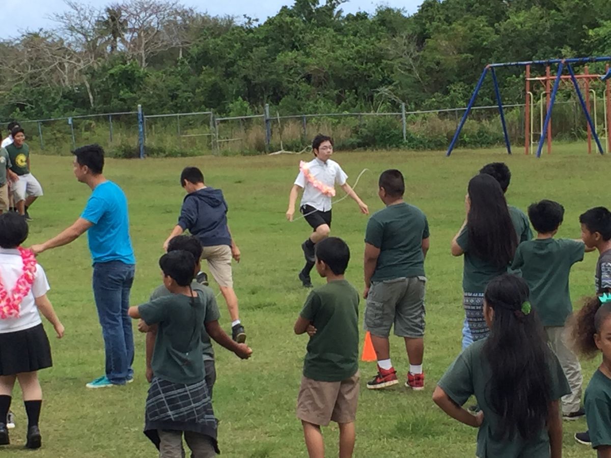 折り紙の後は、グランドでボールや縄跳びを使った、リレーをおこないました。