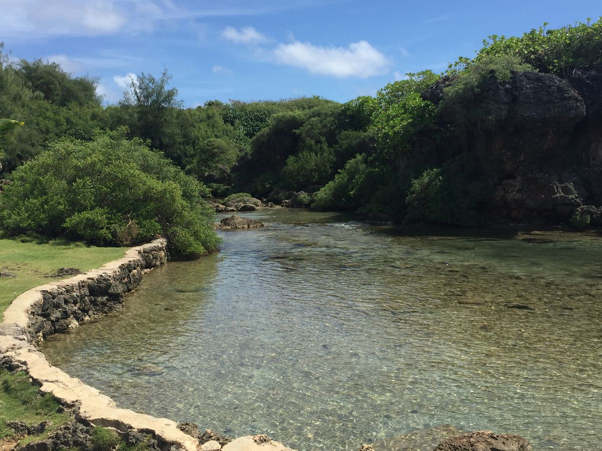 途中、イナラハン天然プールに立ち寄りました。自然にできたブールは、透明度が高くて底まで透き通って、たくさんの魚をみることができました。
