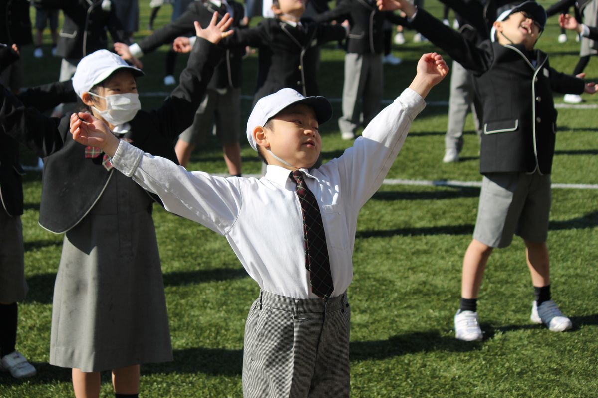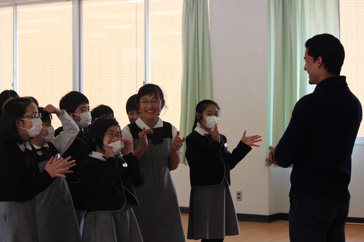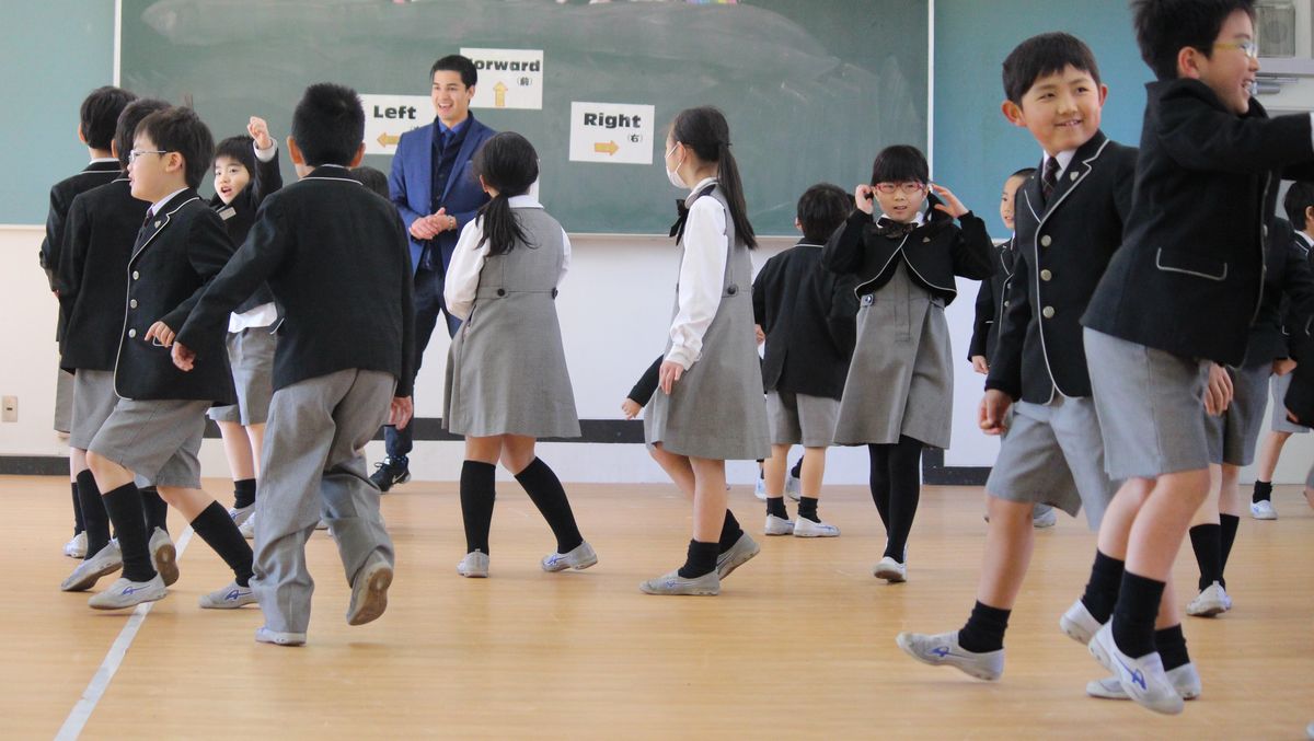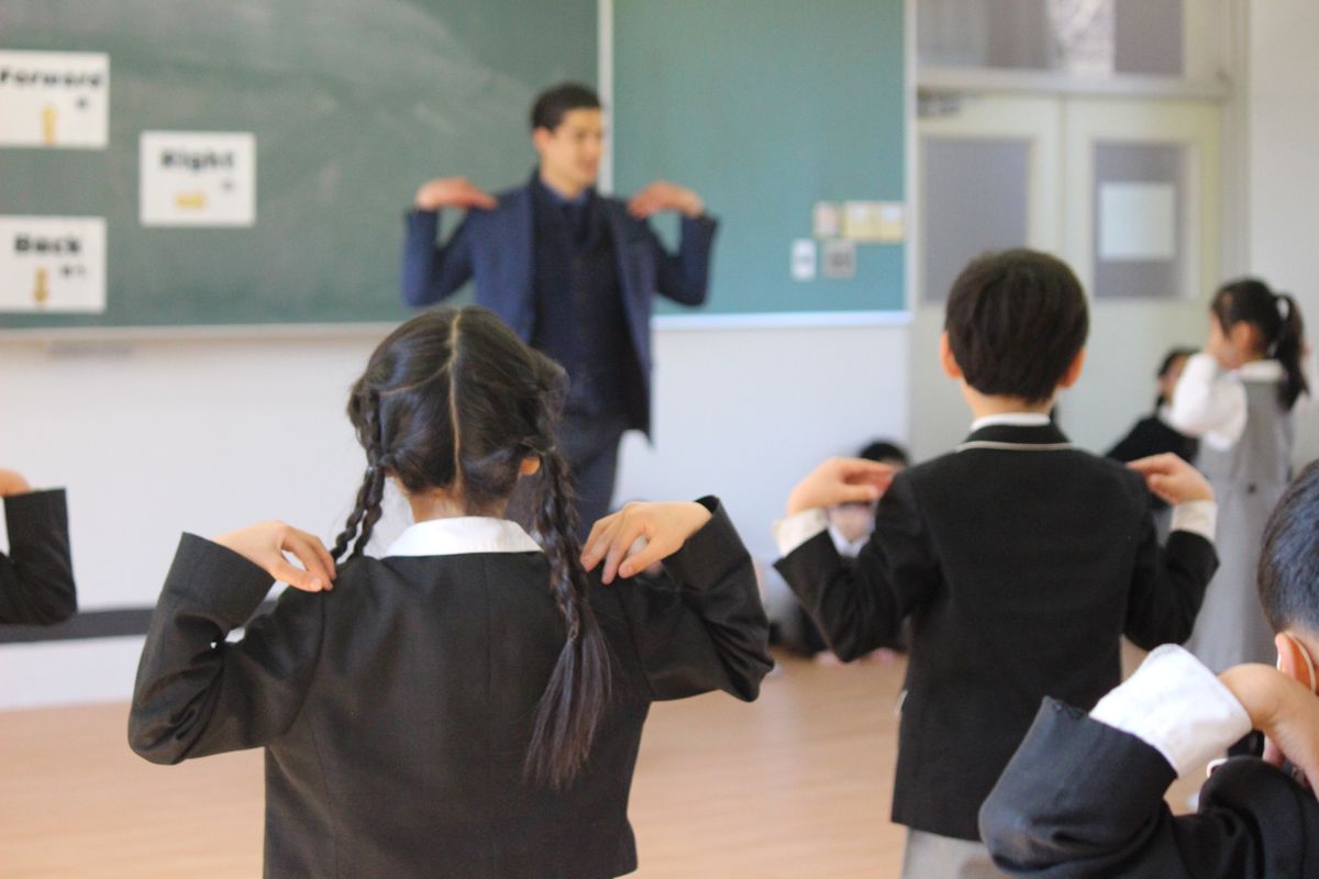 様々な動きと英会話を一緒に楽しく学び,ますます英語を好きになる子どもたちです。